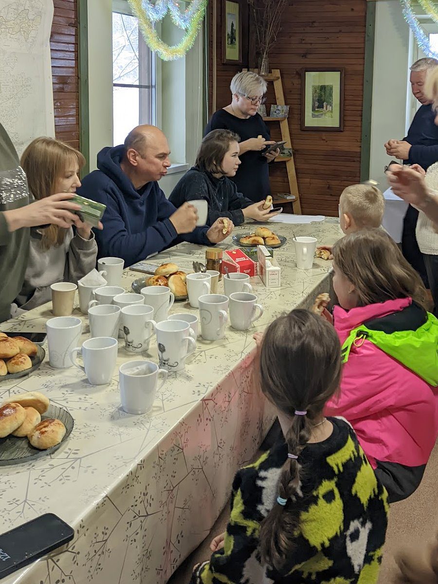 После музея нас пригласили в небольшую комнату в административном здании — что-то вроде комнаты отдыха для посетителей. Там уже стоял небольшой самовар и пара электрочайников, накрыт стол.
