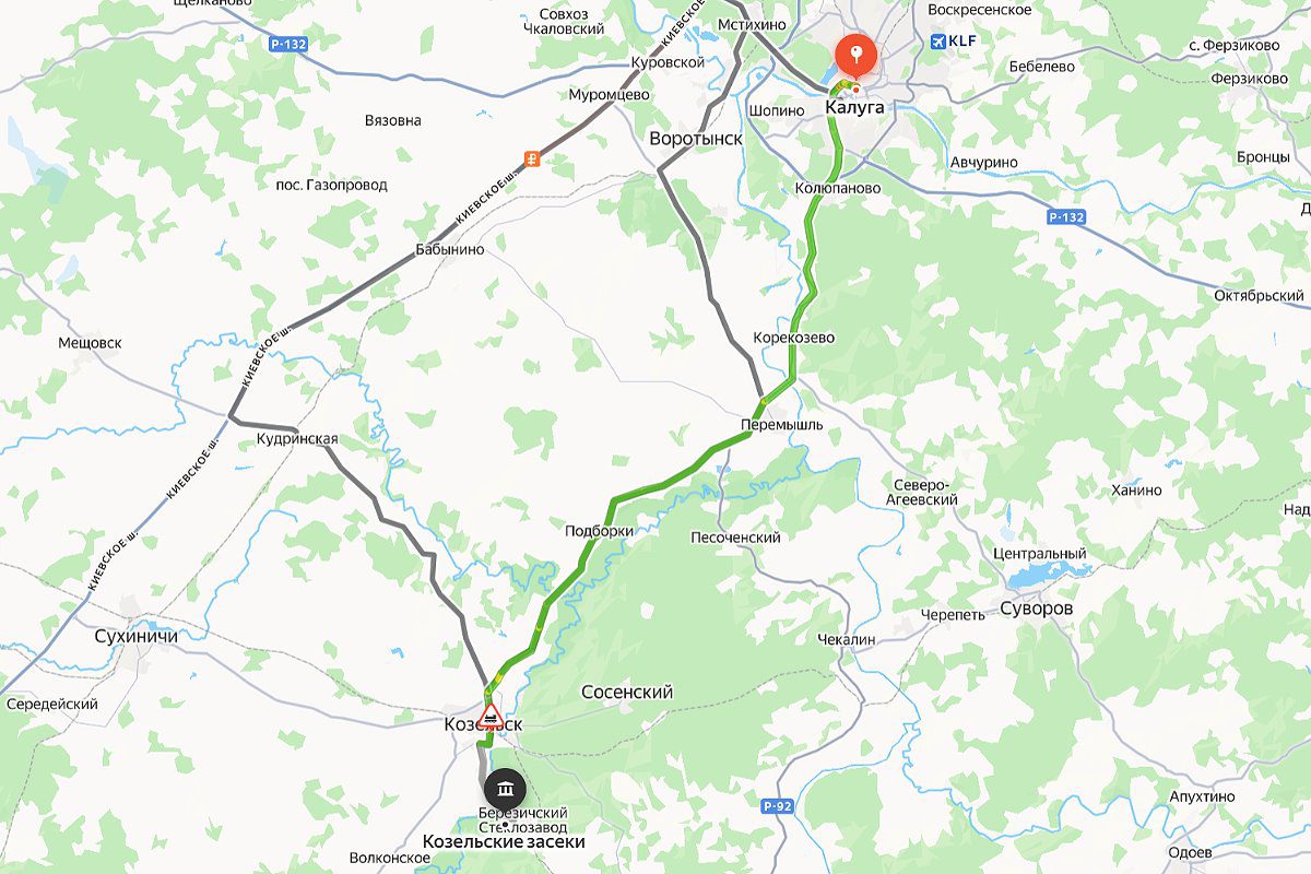 Выехали из Калуги на нескольких машинах и договорились с друзьями ехать «мини-колонной». Местом сбора выбрали Перемышльское кольцо — транспортный узел недалеко от Перемышля, где сходятся маршруты на Козельск и в сторону Тульской границы. Кстати, и сам Перемышль когда-то входил в систему Засечной черты, но об этом позже.
