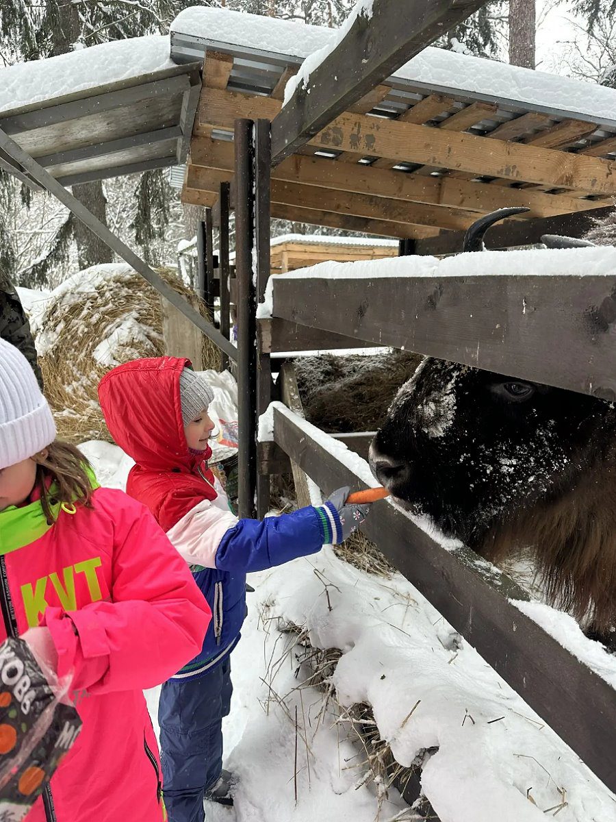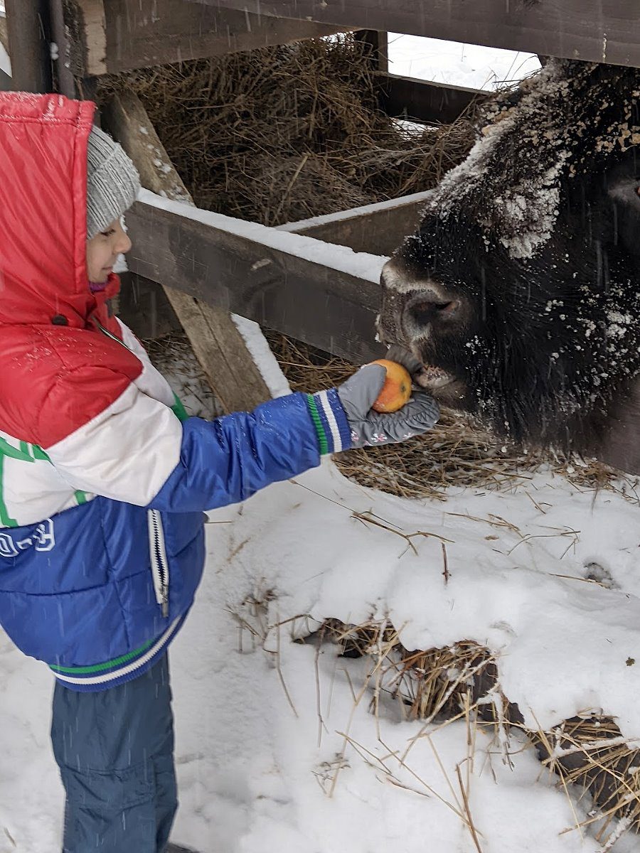 Приезд в музей и главное развлечение зимы — кормление зубров