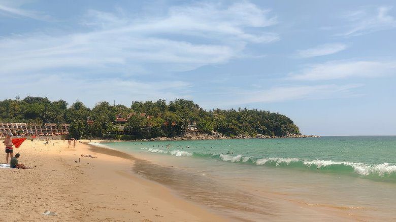 Закатное дефиле всего острова Пхукет. Приезжайте на час пораньше, берите лёгкую накидку — наверху тянет прохладой. Если толпа (которая постоянно обновляется) не по душе, уходите по тропе вправо от маяка — вид тот же, людей меньше. Внизу — уютная Я Нуй для быстрых ног в воду до заката.