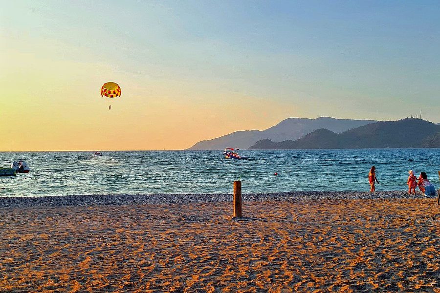 Сиде в мае — уже другой сценарий. Этот курорт особенно любят семьи с детьми, и причина тут вполне понятная: песчаные пляжи, пологий вход в море, меньше резких глубин. В районах Кумкёй, Эвренсеки и Чолаклы вода прогревается чуть быстрее именно за счёт мелководья. Для майского отдыха это не мелочь, а вполне рабочее преимущество.