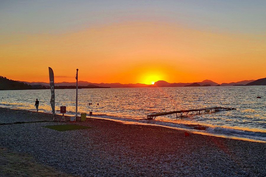 Причина довольно простая и совсем не романтическая: Анатолийская Ривьера лучше прикрыта горами Тавра, поэтому и воздух, и вода здесь прогреваются быстрее. А вот Бодрум, Мармарис и даже местами Фетхие в мае запросто дают картинку уровня «хочу сюда немедленно», но с купанием там не всегда всё так гладко. Днём может быть +26 °C, а море — около +19 °C. На бумаге разница вроде не драматичная. Телом она ощущается мгновенно.